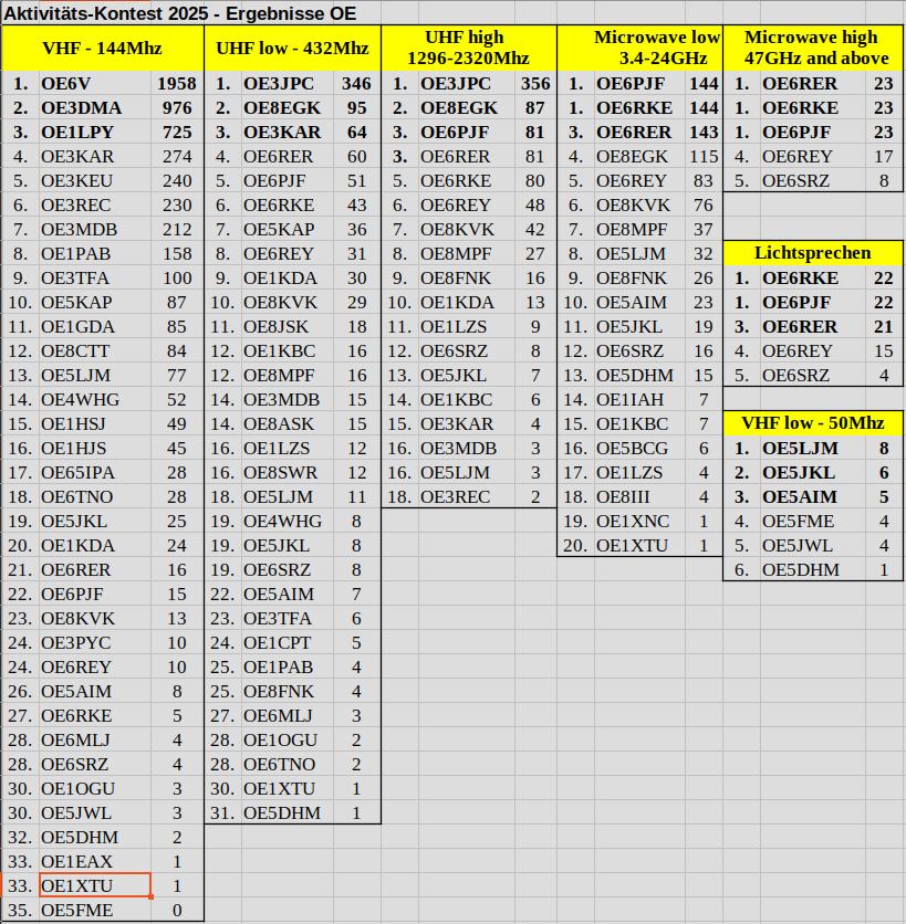 Der VHF / UHF und Mikrowellen Aktivitätscontest von Fred, OE8FNK, Referat Mikrowelle betreut.