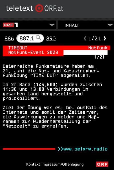Hier die Information zum Ablauf der Notfunkübung TIME OUT am 21. Juni in der Version 4.0 - Download des pdf siehe unten