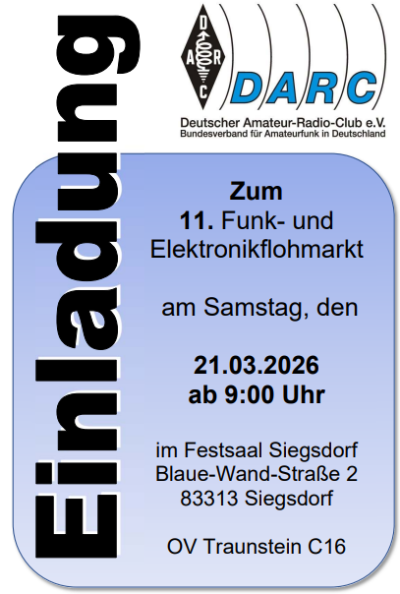 Der Ortsverband Traunstein (C16) veranstaltet am Samstag,den 21.03.2026 seinen 11. Funk- und Elektronikflohmarkt.